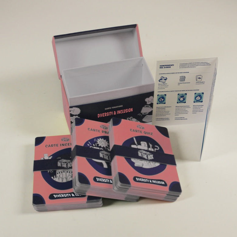 Le Carte Tematiche Diversity & Inclusion sono state sviluppate per organizzare sessioni di game based training che abbiano l'obiettivo di fornire la necessaria conoscenza sugli elementi essenziali della cultura del rispetto delle diversità e della inclusione e per aiutare a navigare in diversi contesti di lavoro in modo più efficace e fornire gli strumenti per approfondire la comprensione delle differenze che circondano l'ambiente lavorativo.